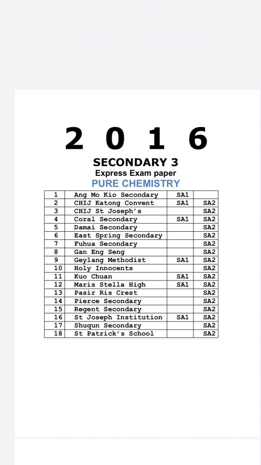 • 2016 Sec 3 Pure Chemistry Exam Papers