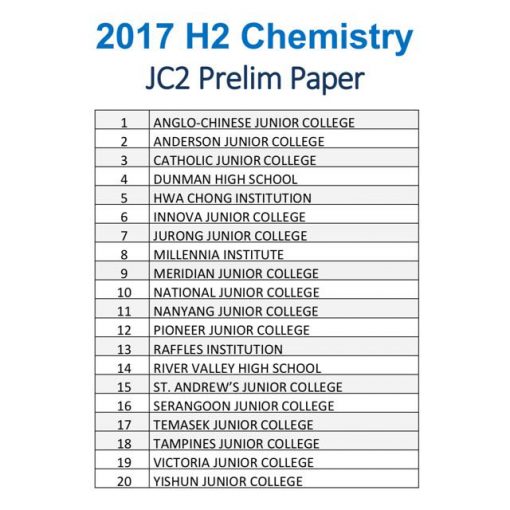 • 2017 JC2 H2 Chemistry Prelim Papers
