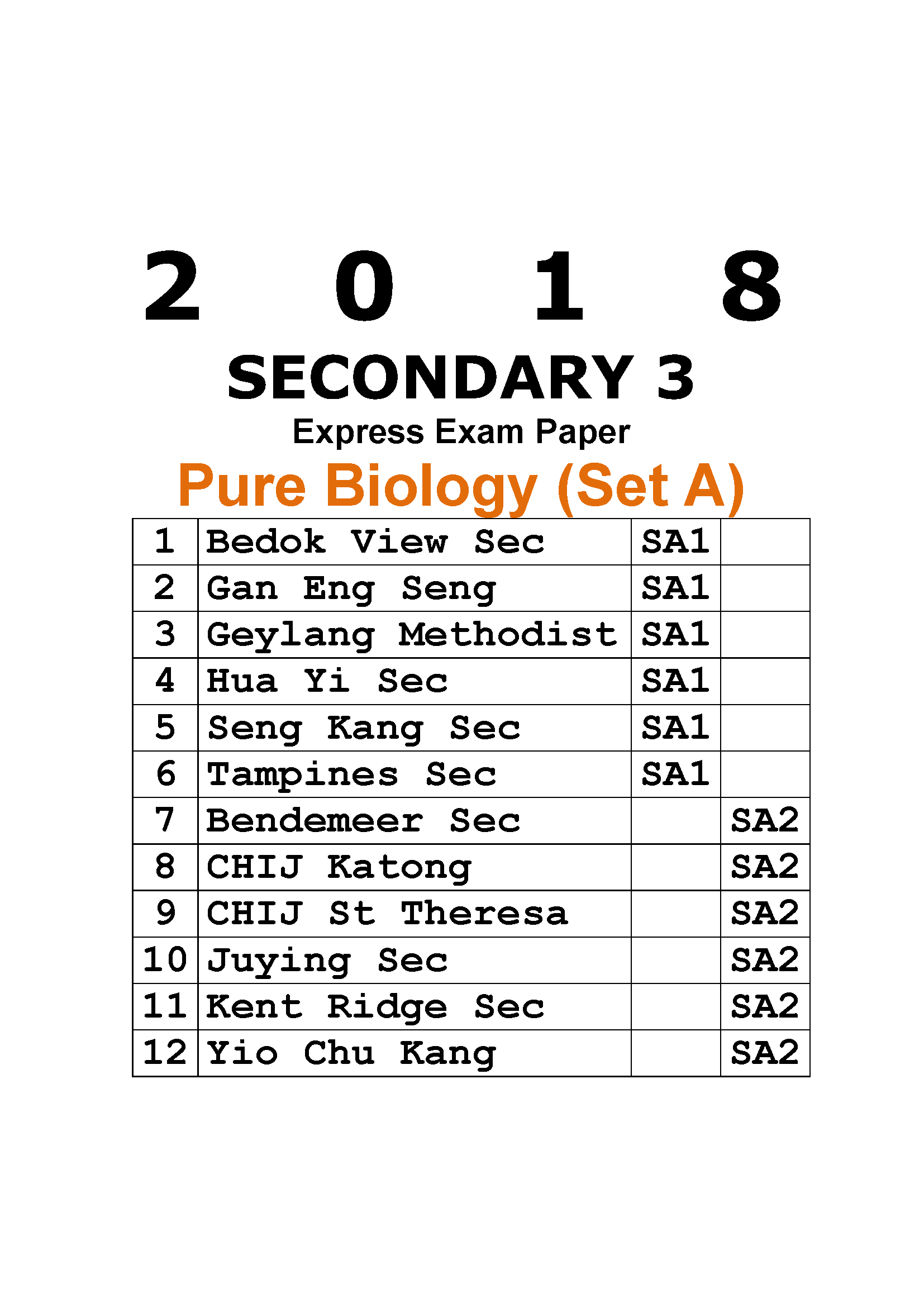 • 2018 Sec 3 Pure Biology Exam Papers