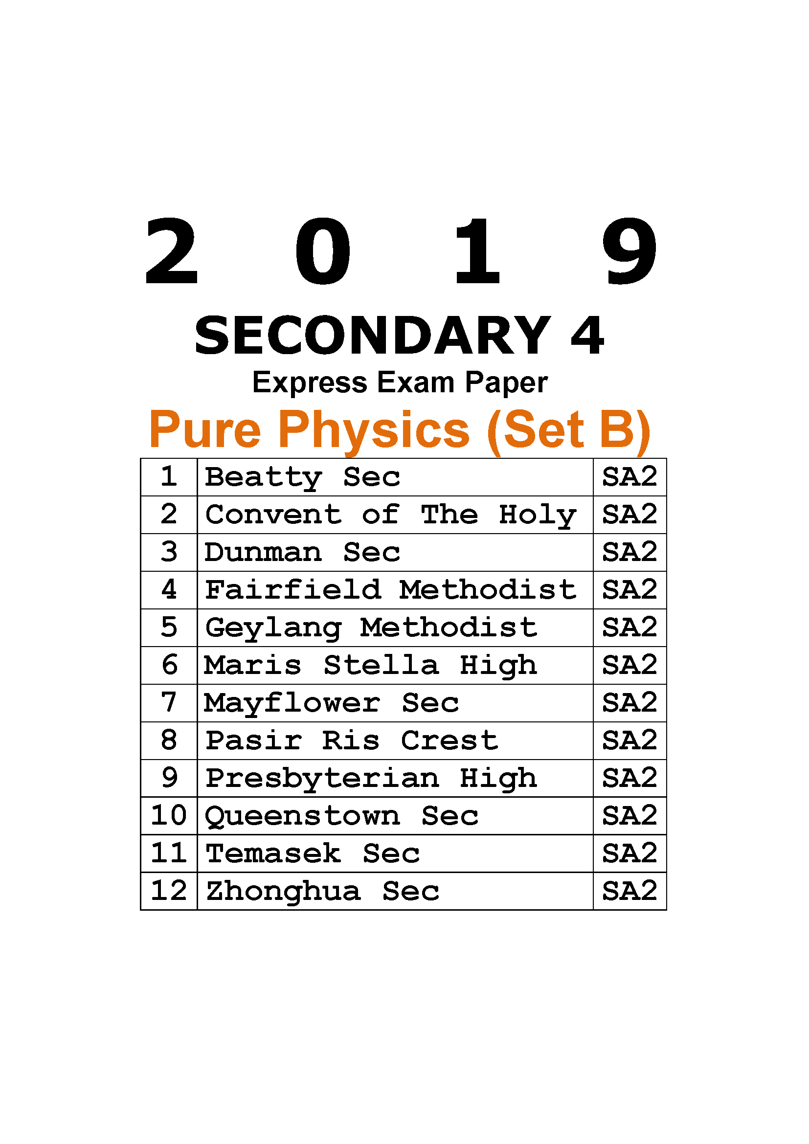 2019 Secondary 4 Express Pure Physics Exam Papers (Set B) (soft copy)