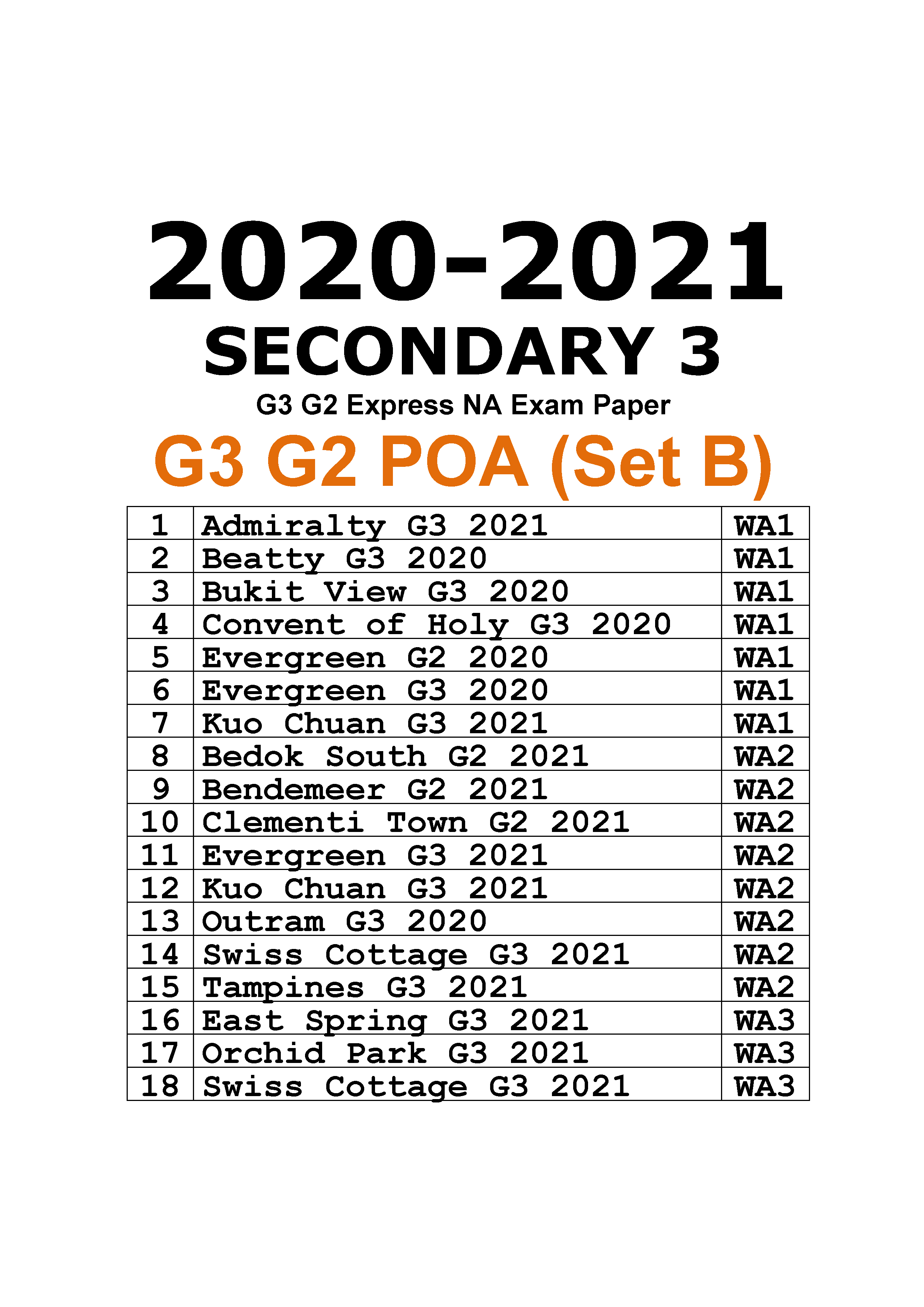 • 2020-2021 Sec 3 G3 G2 POA Exam Papers
