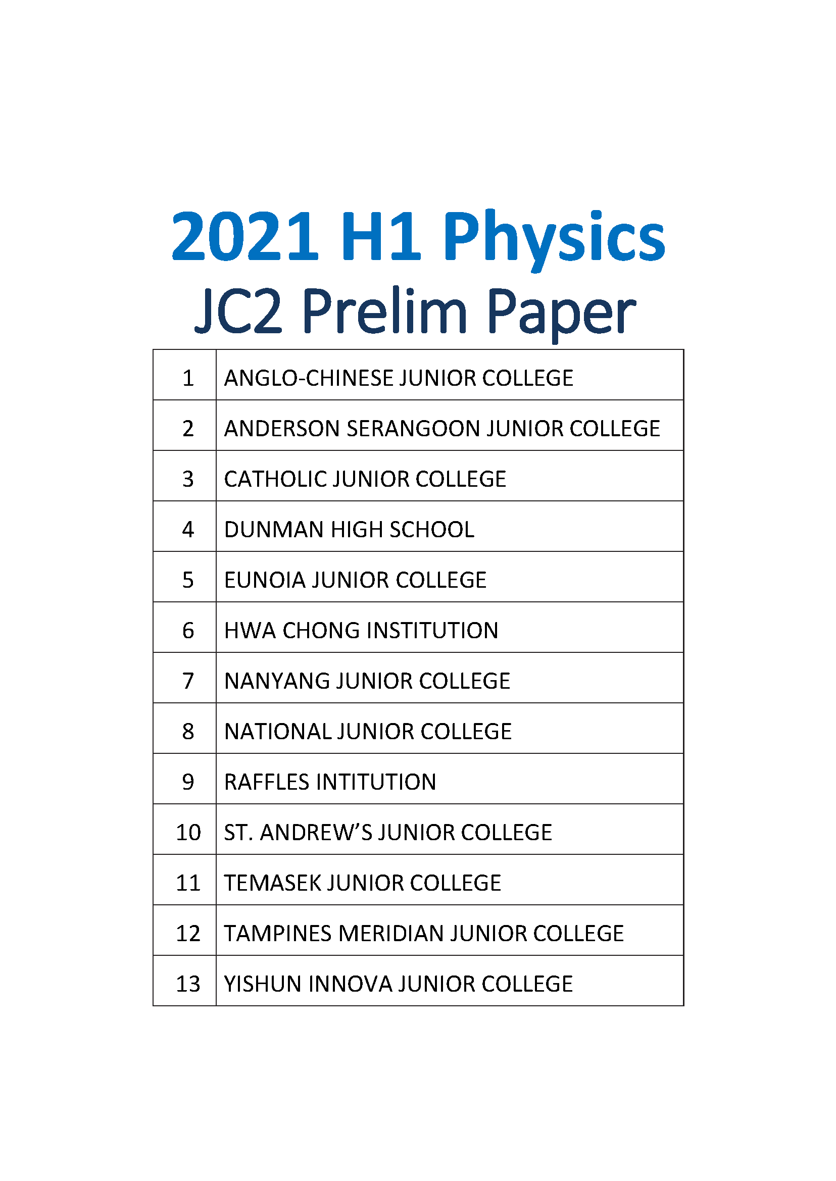 • 2021 JC2 H1 Physics Prelim Exam Papers