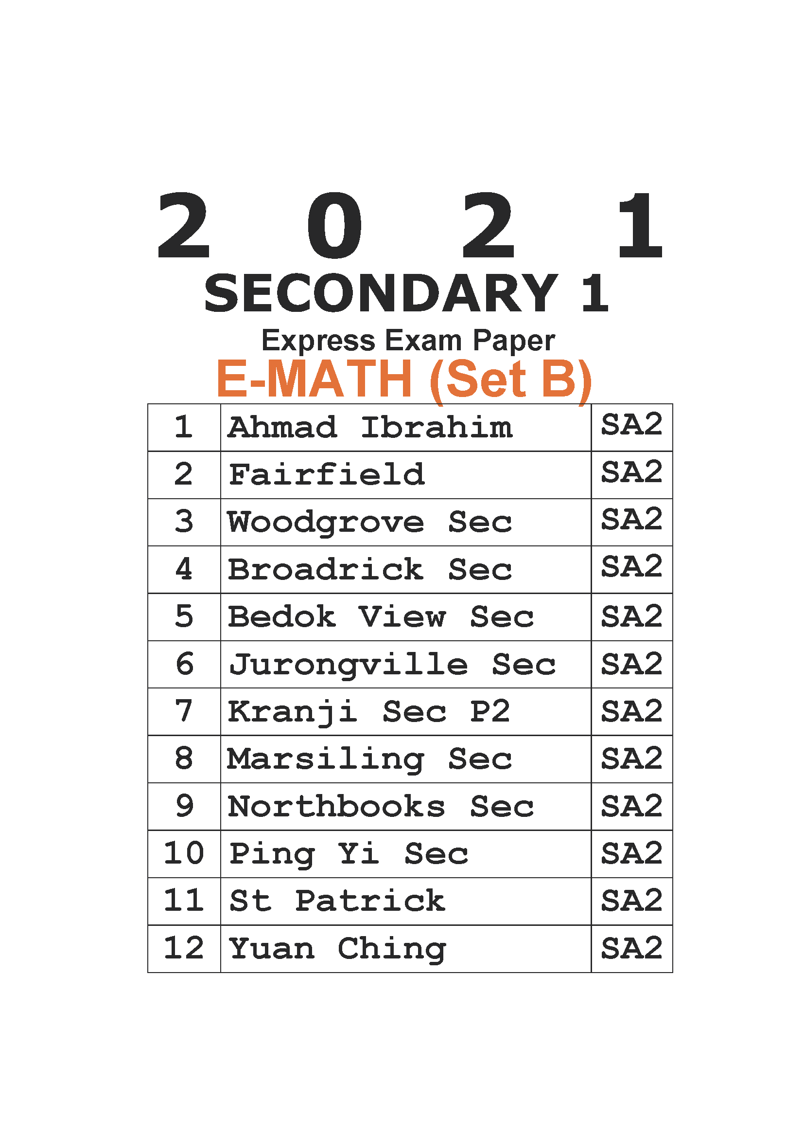 • 2021 Sec 1 Express Mathematics E-Math Exam Papers