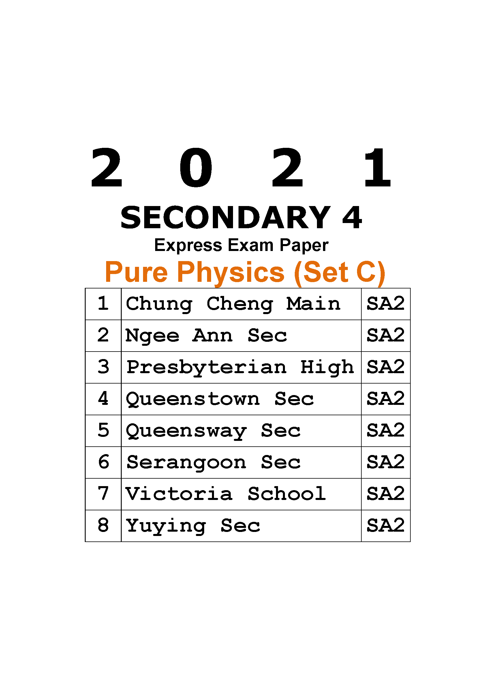 • 2021 Sec 4 Express Pure Physics Prelim Papers