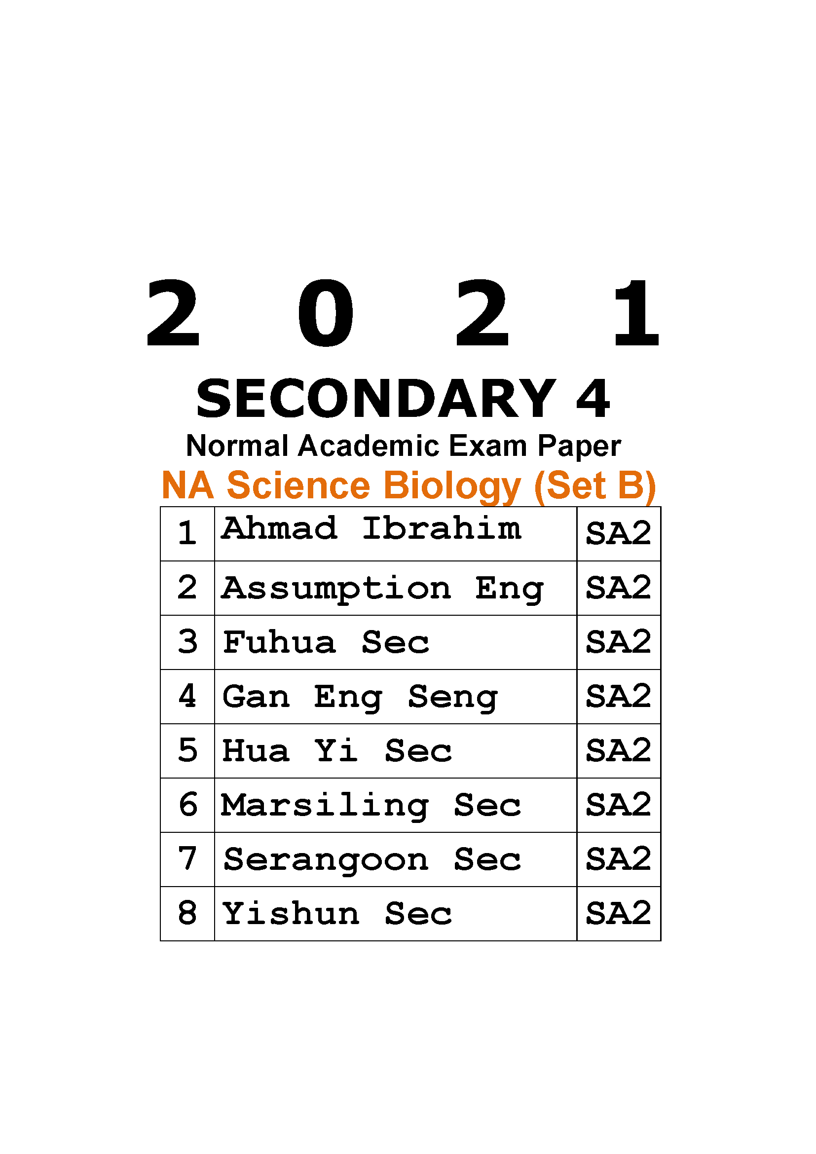 2021 Secondary 4 Normal Academic (NA) Science Biology Exam Papers (Set B) (soft copy)