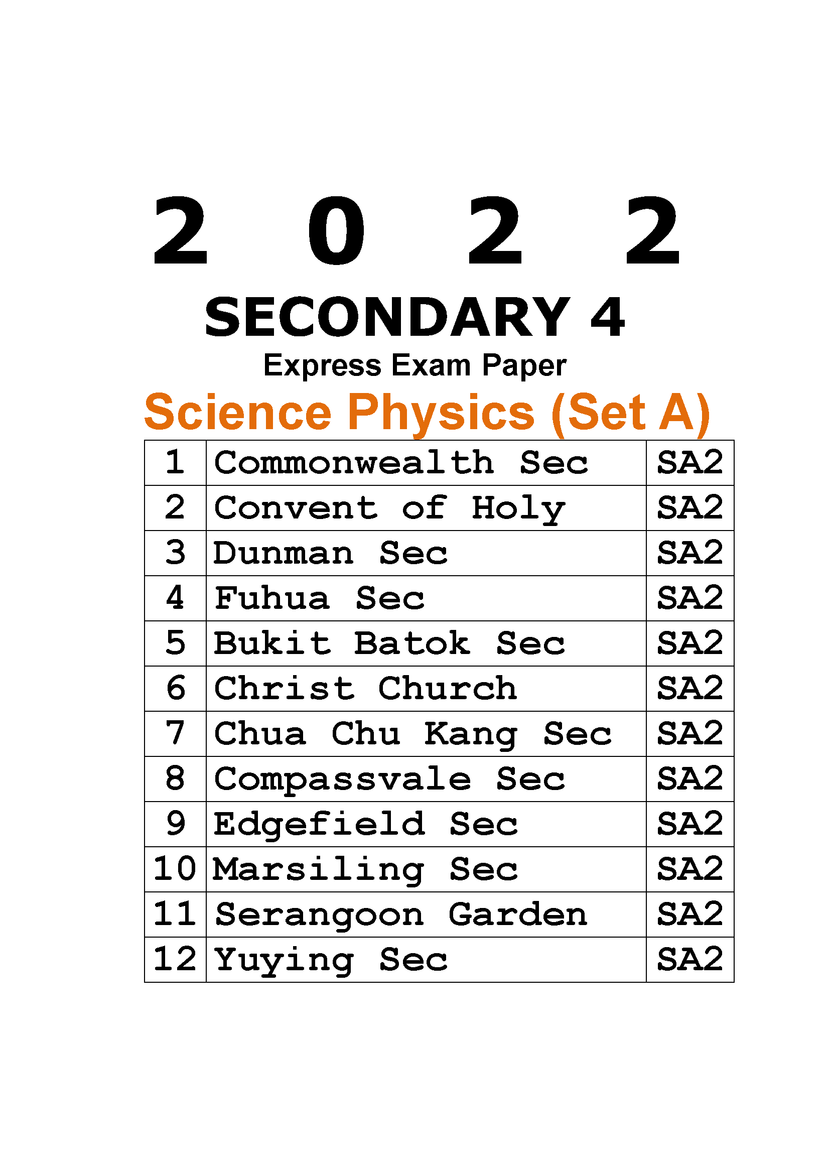 2022 Secondary 4 Express Science Physics Prelim Exam Paper (Set A) (hardcopy)