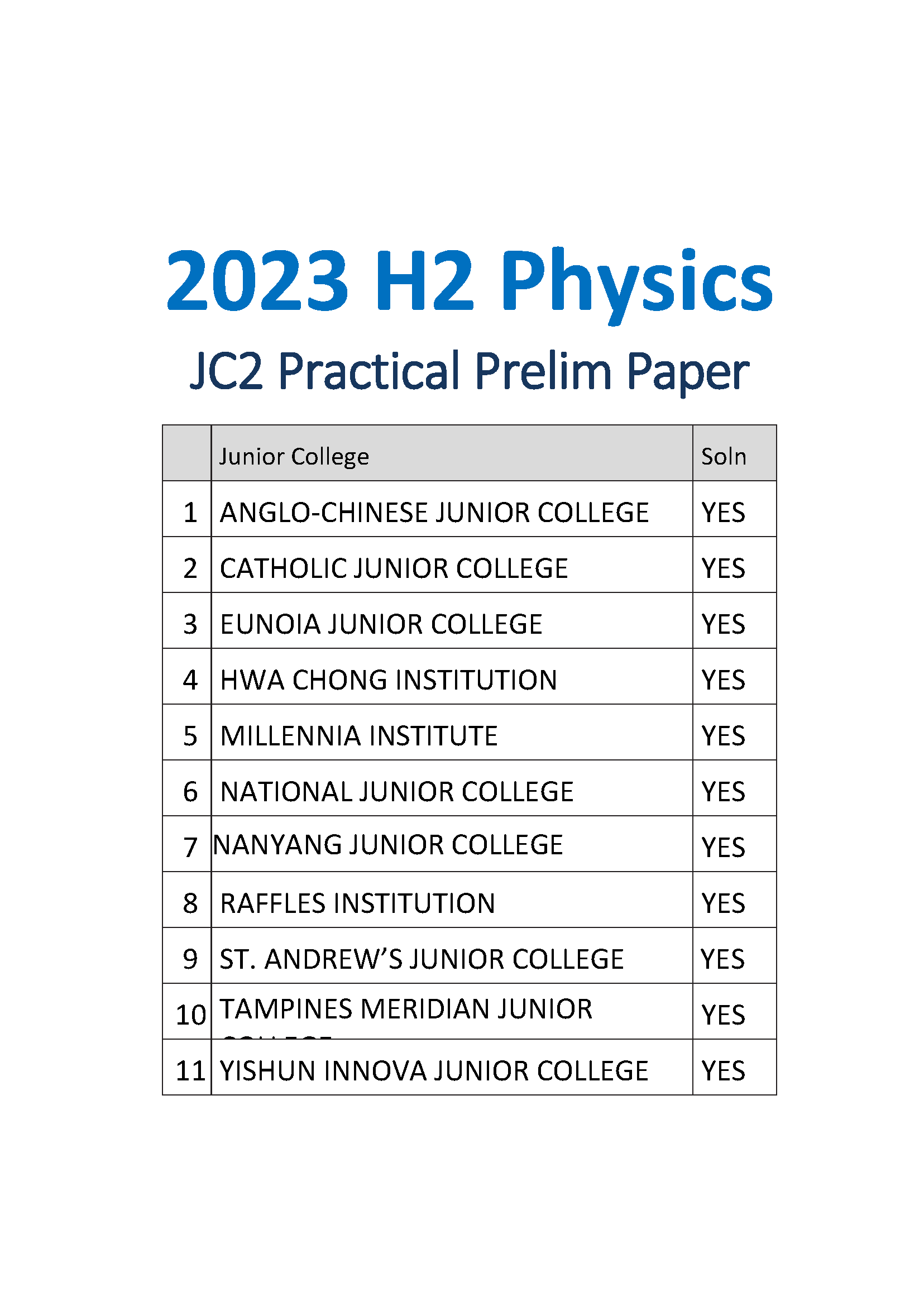 • 2023 JC2 H2 Physics Practical Prelim Papers
