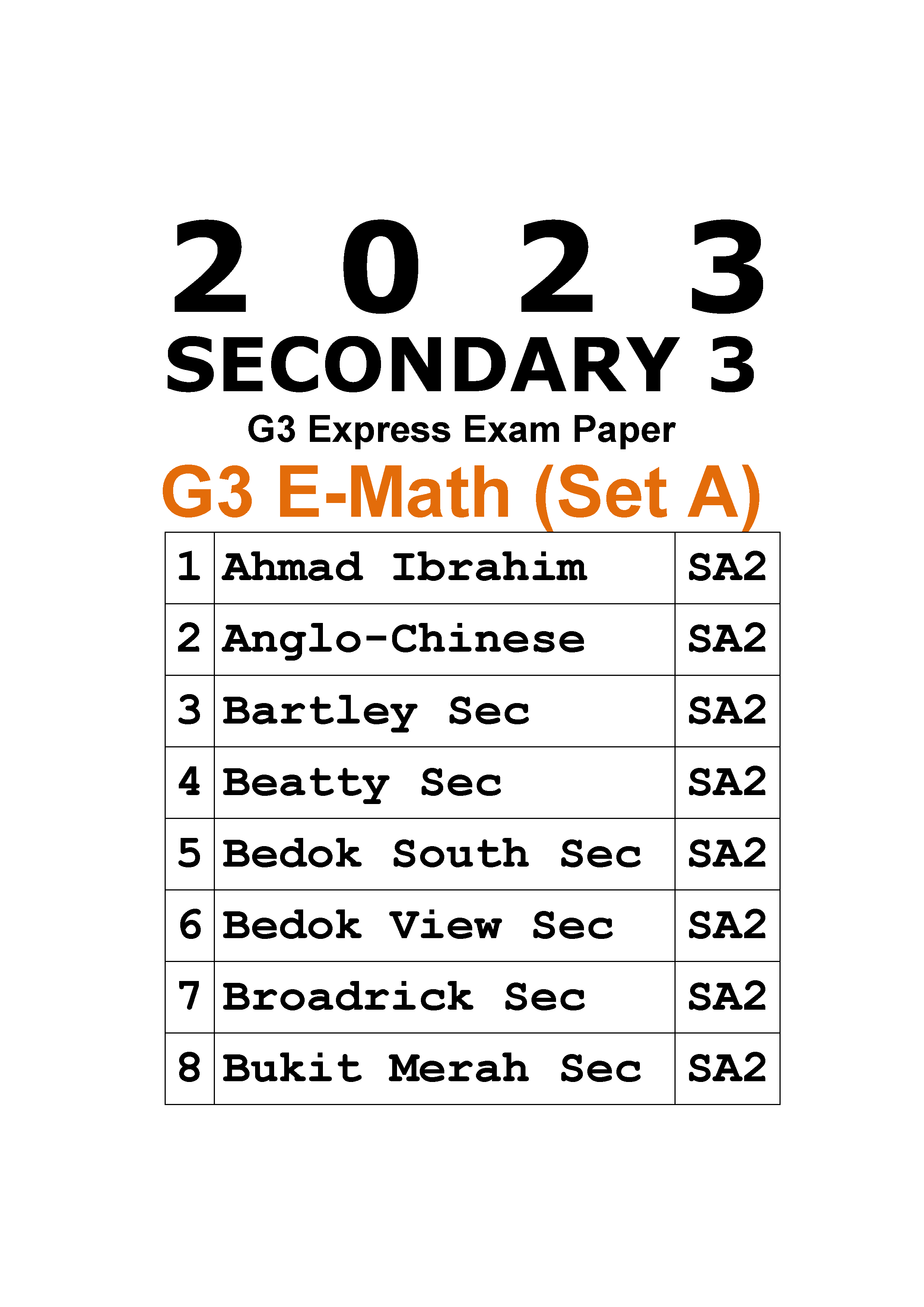 2023 Secondary 3 Sec 3 G3 General 3 Express Elementary Math EMath Exam Paper (Set A) (soft copy)