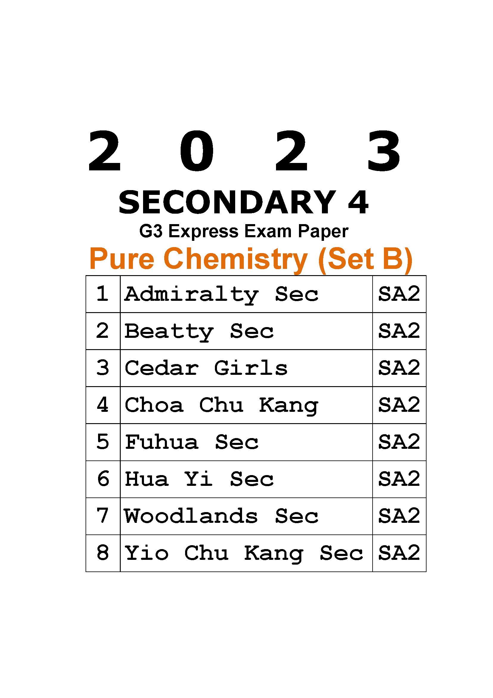 2023 Secondary 4 G3 Express Pure Chemistry Prelim Exam Papers (Set B) (soft copy)