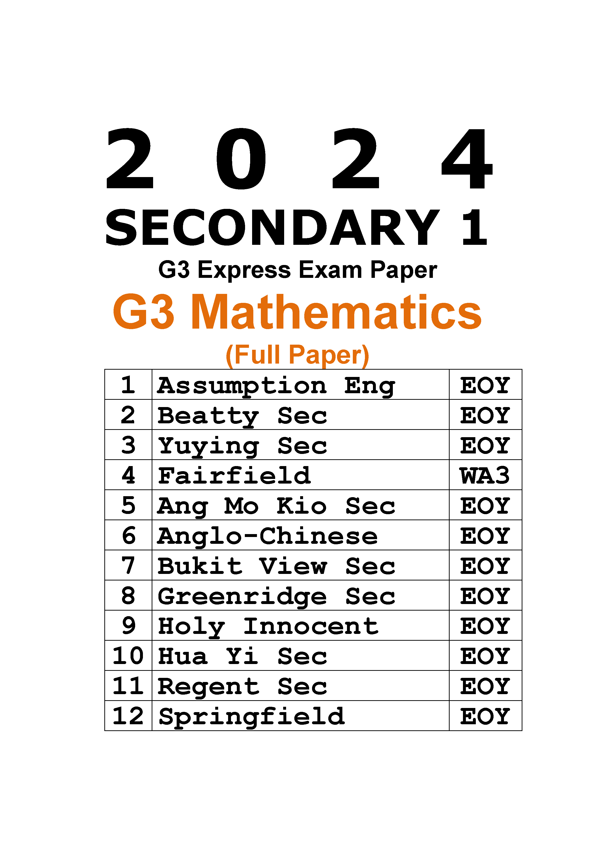 • 2024 Sec 1 G3 Express Mathematics Math Exam Papers