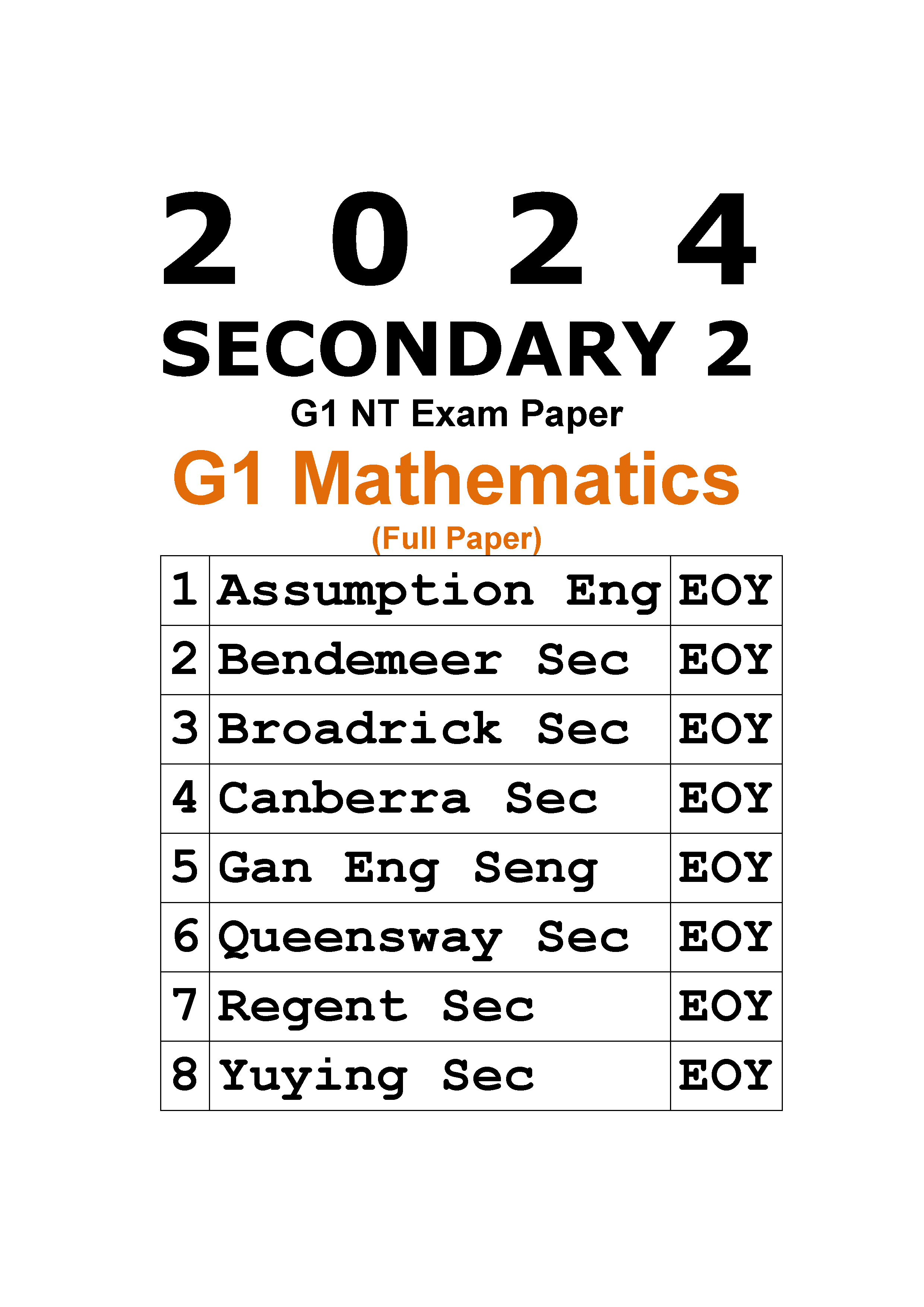 • 2024 Sec 2 G1 NT Mathematics E-Math Exam Papers