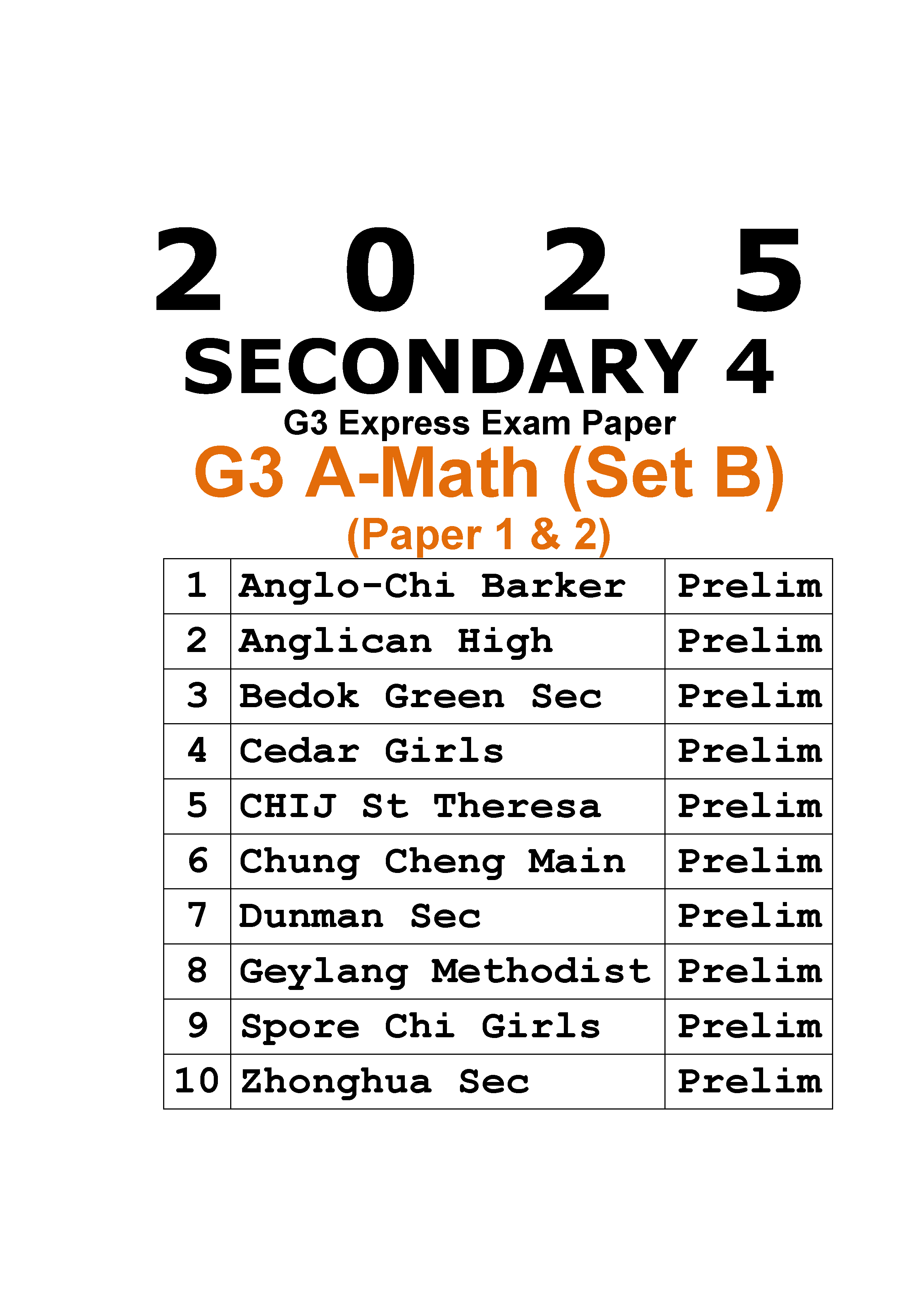 2025 Sec 4 G3 Express Additional Math A-Math Prelim Exam Papers (Set B)